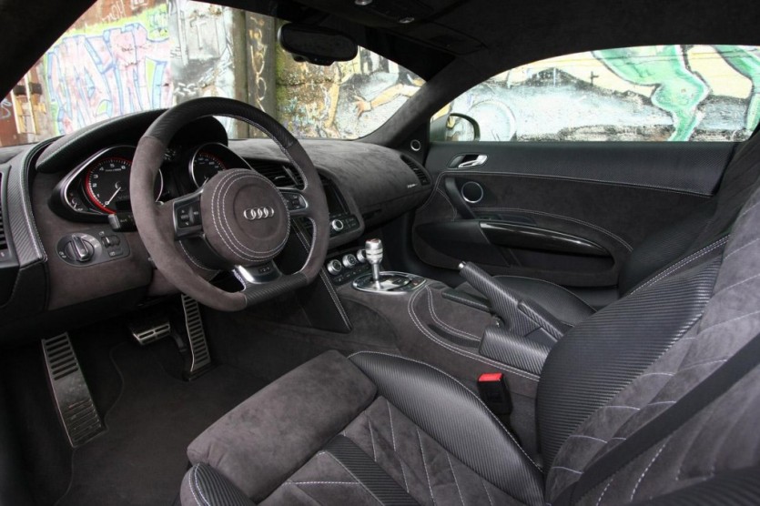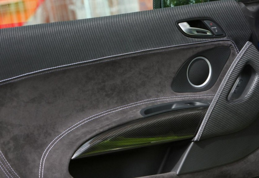 겉모습과 마찬가지로 실내도 파격적인데 거의 모든 부분을 알칸타라로 도배했고 가죽과 카본 룩으로 포인트를 주었다. 도어 암 서포터 부분만 리얼 카본이다.