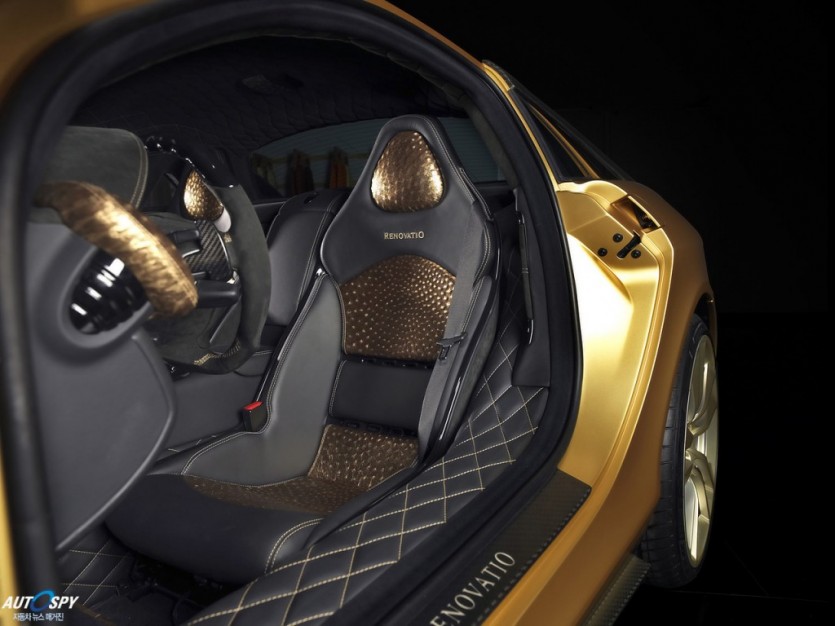 SLR 맥라렌의 부활 찬가를 불렀다. 무광택 금빛으로 치장한 SLR 레노바찌오(Renovatio)의 스타일은 호화로움 그 자체다. SLR의 아름다움을 더욱 빛나게 하는 것은 물론이고 아무나 접근할 수 없을 만큼 엄숙하기까지 하다.