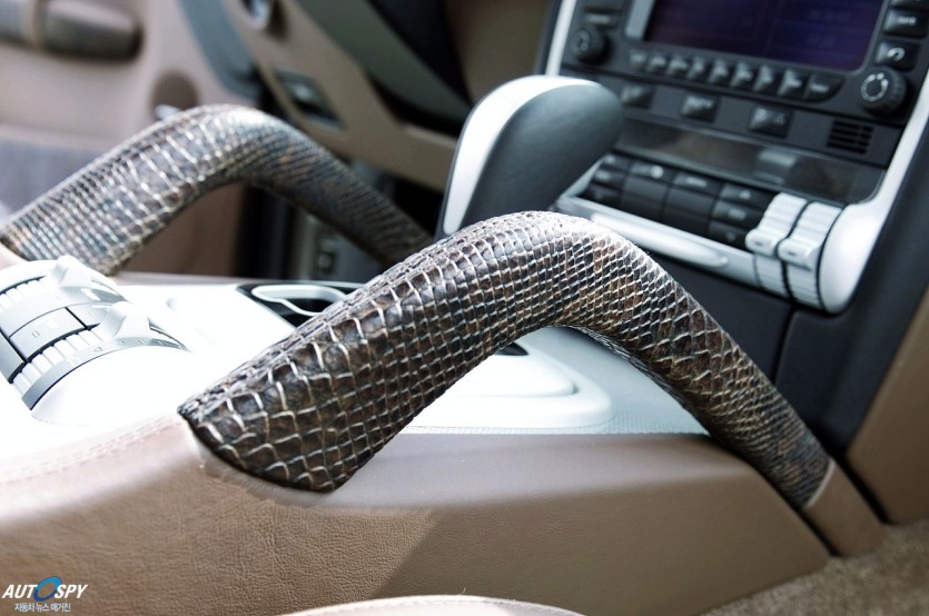 커스텀 모델이니만큼 인테리어는 오너의 선택에 따라서 다양한 모습으로 꾸밀 수 있다. 데모카에서는 투톤 뱀가죽을 사용했다.