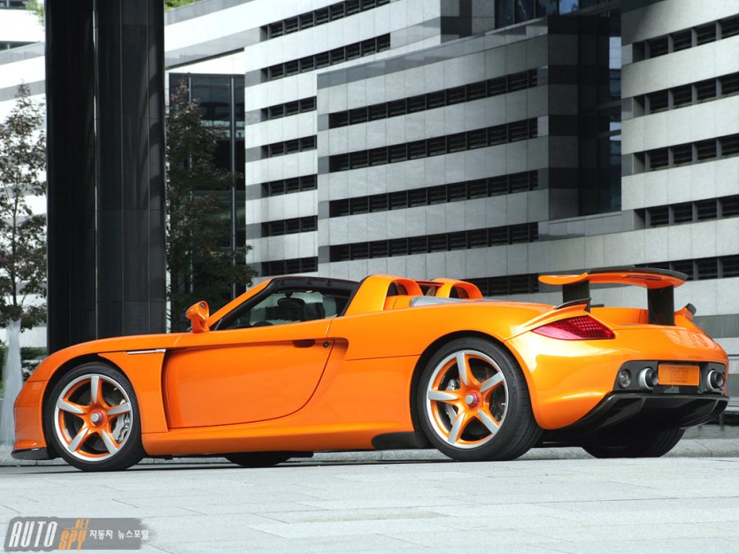 아름다운 보디라인에 테크아트 디자이너의 카본 소재 에어로파츠를 장착했고 메탈릭 오렌지 컬러로 페인팅 되었다.