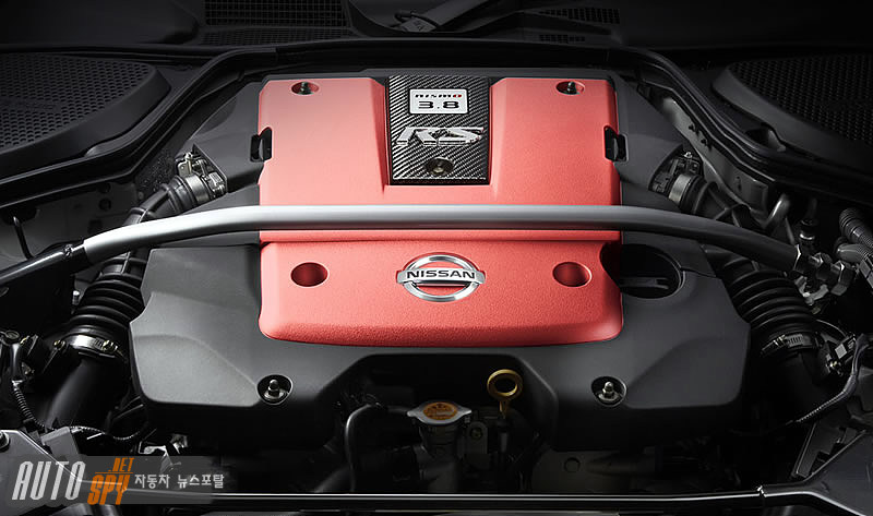 베이스 모델의 3.5리터 V6를 대신해 배기량을 늘인 3.8리터 V6 엔진을 장착했다. 이 엔진은 레이스 전용으로 설계된 '페어레이디Z Version NISMO Type 380RS-Competiotion(사진 위)'에 장착되었던 것을 395마력 엔진을 디튠해 일반도로 사양(350마력)에 최적화 시킨 것이다.