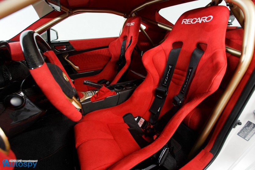 알칸타라 소재의 강렬한 레드 컬러가 인상적인 실내도 오너의 취향을 반영한 결과다. 레카로 RS-G 버킷 시트, P3 디지털 게이지, 8포인트 롤케이지를 달고 카본 파이버 스티어링 휠 및 기어노브를 장착했다.