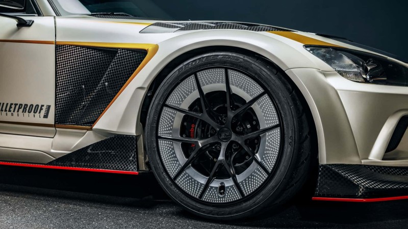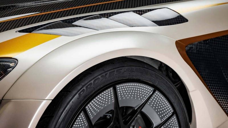 19인치 BP-RW 에볼루션 휠은 일본 전통 금속공예 ‘쓰치메’에서 영감을 받은 텍스처를 적용했고, 토요 R888R(295/30ZR19) 타이어와 브렘보 피스타 브레이크(전 6피스톤, 후 4피스톤)를 조합했다.