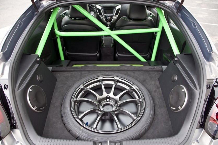 벨로스터의 1.6L GDi 엔진에 터보를 붙이고 대용량 인터쿨러, 매니폴드, 전용 풀리 세트를 달아 출력을 210마력으로 높였고 늘어난 출력에 맞춰 브레이크 시스템을 6피스톤 제품으로 보강했다. 섀시 튜닝도 빼놓을 수 없는 포인트. 8점식 롤 케이지로 차체를 보강하면서 스트럿과 스프링, 스웨이 바 등의 강성을 높인 트랙 전용 코일오버 서스펜션을 붙이고 캠퍼 세팅도 새롭게 바꿨다.