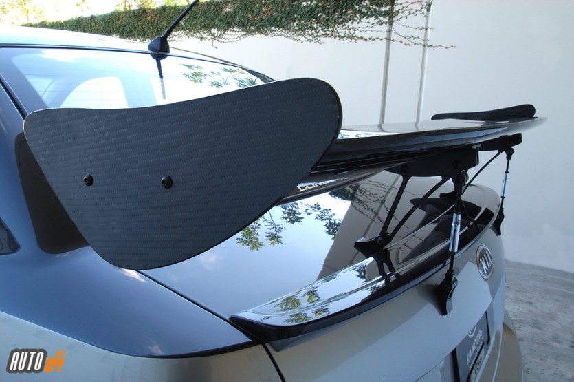 가장 먼저 눈에 들어오는 것은 커스텀 제작된 카본 파이버 보닛과 오버사이즈 카본 리어 윙.