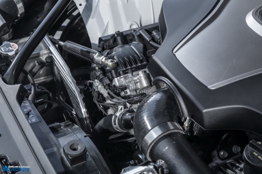 레이싱 경험으로 얻은 노하우로 만든 에어로파츠도 빼놓을 수 없는 매력. 앞뒤 범퍼 디자인을 달리하면서 카본 립 스포일러를 덧붙여 공력 특성을 개선했으며 그릴과 헤드램프 디자인을 바꿔 기본형과 차별화된 이미지를 강조했다. 또 앞뒤 펜더를 확장하고 그 안쪽으로 초광폭 타이어를 심었다.