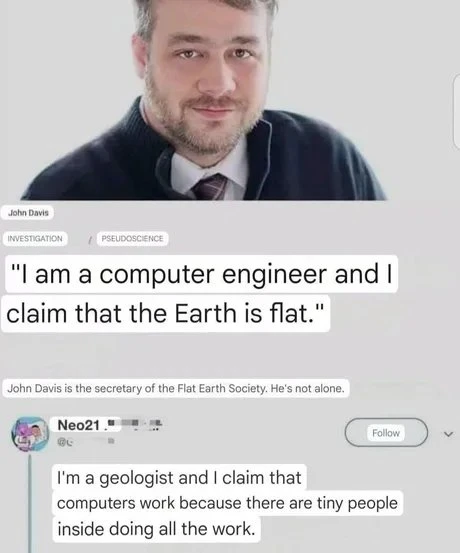 "난 컴퓨터 엔지니어인데 지구는 평평하다고 주장한다."