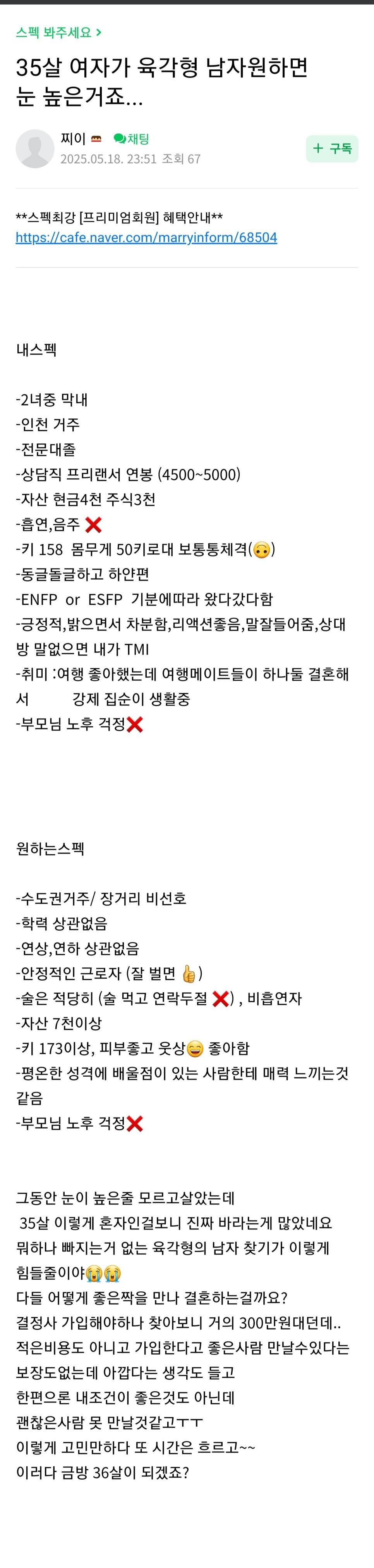 35살 여자가 바라는 남자 조건