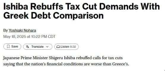 일본 이시바 총리 "일본 재정상황 그리스보다 심각하다"