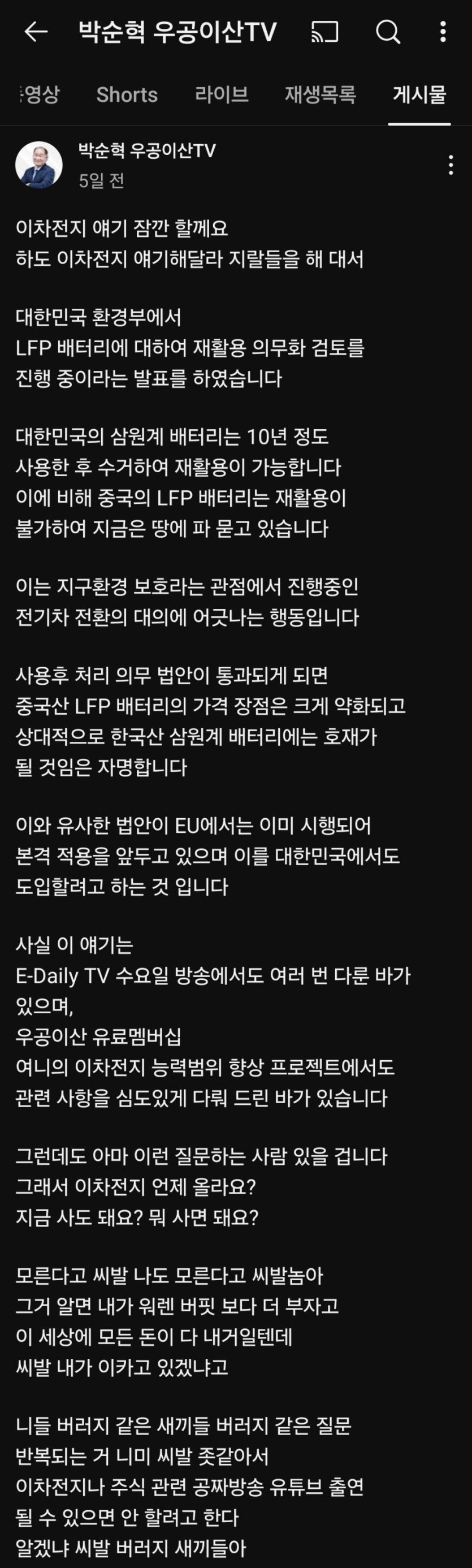 쌍욕주의) 한때 유명했던 배터리 아저씨 근황.jpg