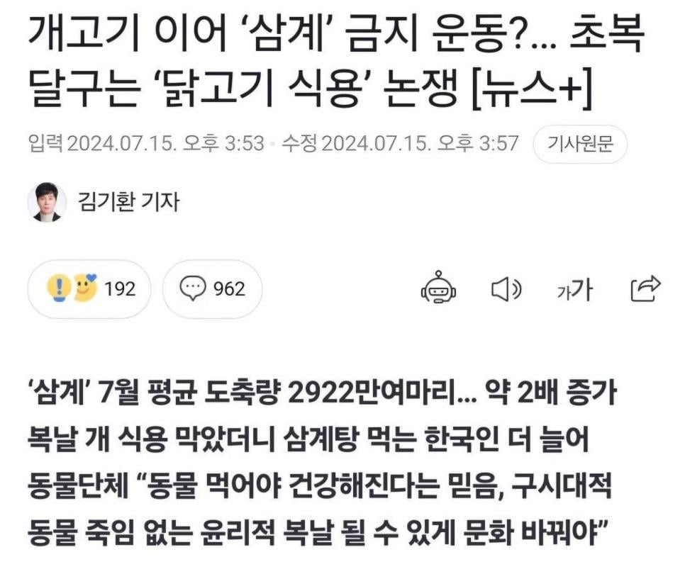 개고기 식용 줄어드니 닭고기도 그만 먹으라고.jpg