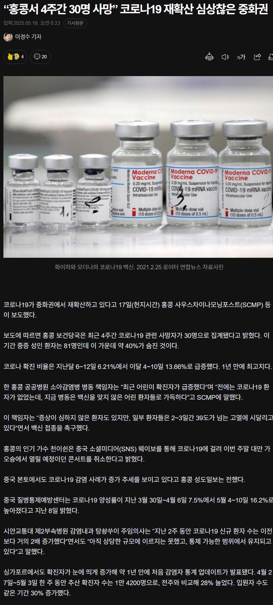 홍콩서 4주간 30명 사망 코로나19 재확산 심상찮은 중화권