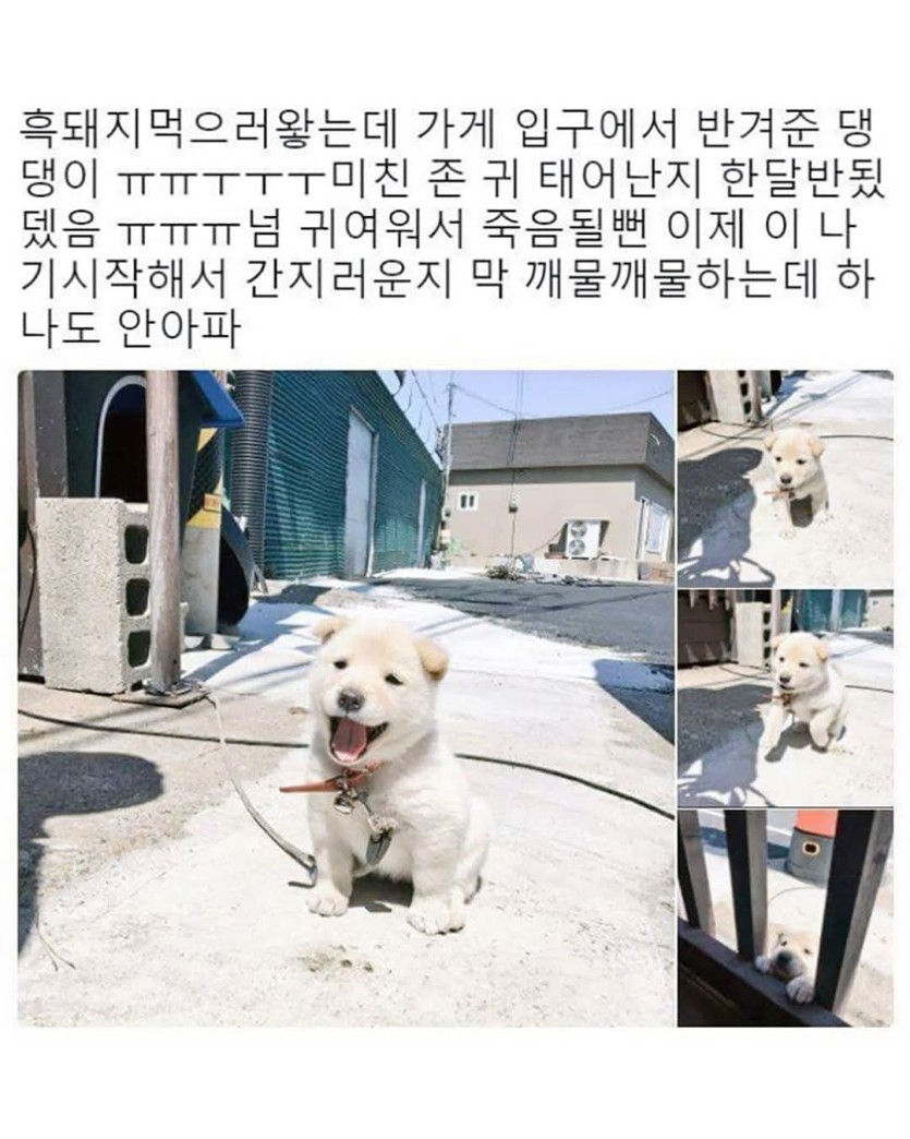 고기집 입구에서 반겨주는 댕댕이