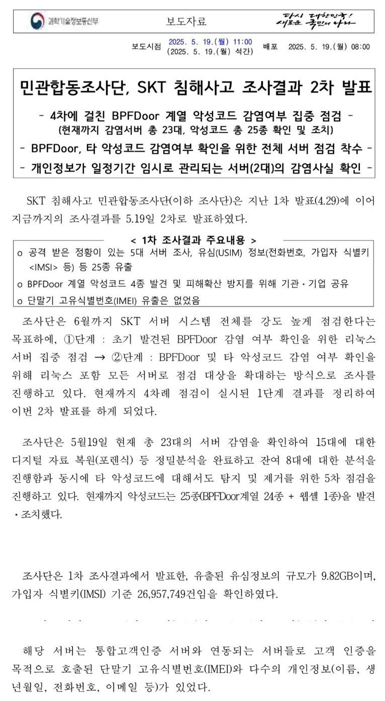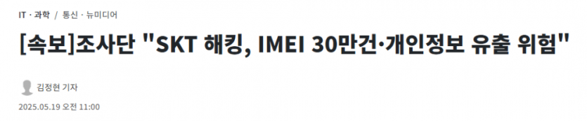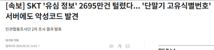 “SKT 가입자식별키 2696만건 해킹 유출”