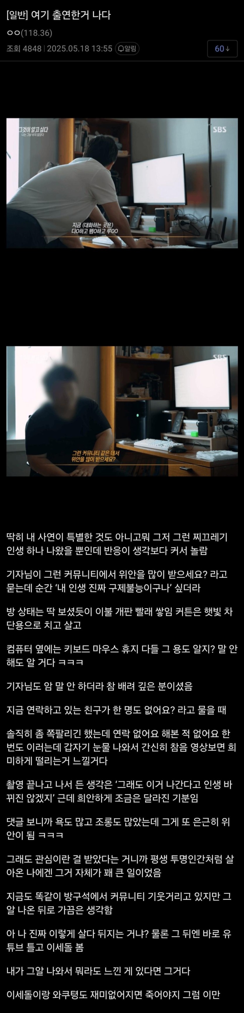 그알 나온 32세 캥거루 히키의 출연 후기.jpg