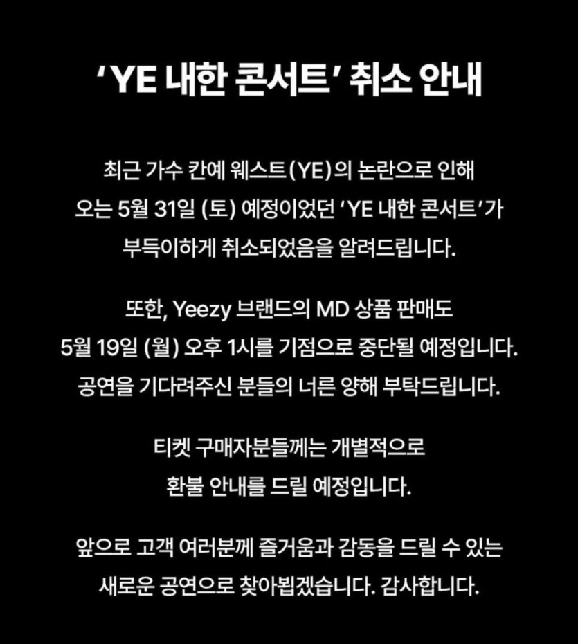 칸예 내한공연 전격 취소 환불. rh1 0 104 0 2025.05.19 12:15 그것도 칸예가 취소한게 아니라 주최측인 쿠팡에서 독단으로 취소시켜버림.사유는 칸예 이번 신곡 싱글 제목이 '하일 히틀러'라서ㅋㅋㅋ 0