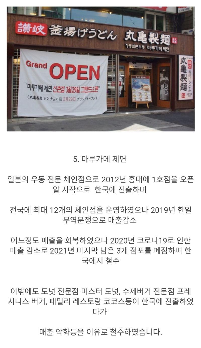 한국에 있었지만 철수한 일본 프렌차이즈 가게들