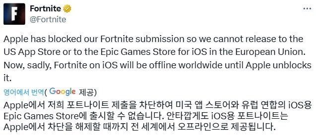 애플, 포트나이트 앱스토어에서 또 차단 rh1 0 96 0 2025.05.18 22:15 에픽 게임즈는 법원에 강제명령을 요청한 상태참고로, 법원이 외부 결제 막는건 불공정 경쟁이니까 막지 말라고 판결 때렸는데이후에 애플이 바로 외부결제에도 수수료 부과하겠다는 정책 통과시켜버려서법원이 경찰에 애플 형사수사 요청 넣음 애플, 포트나이트 앱스토어에서 또 차단 0
