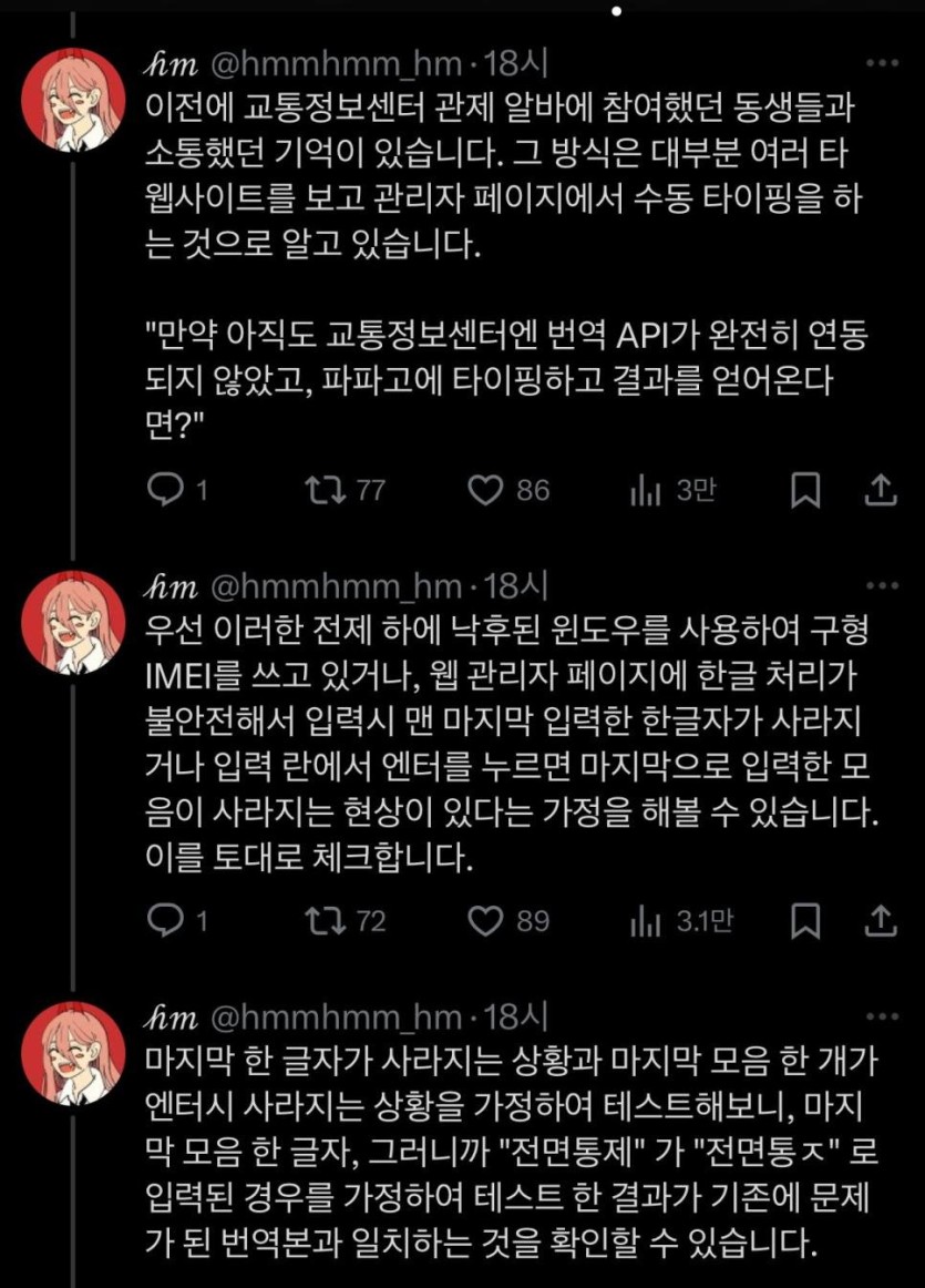 파파고 번역기에 한글 원문 넣고 돌리는데 'ㅔ'를 빼먹어서 당한 미친 억까로 확인ㅋㅋㅋㅋㅋ