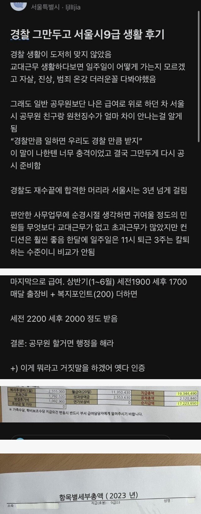 경찰 때려치고 서울시 9급 이직 후기