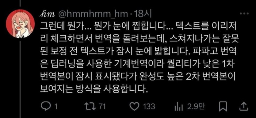 번역 오류다 -> 파파고팀이 ↗됨