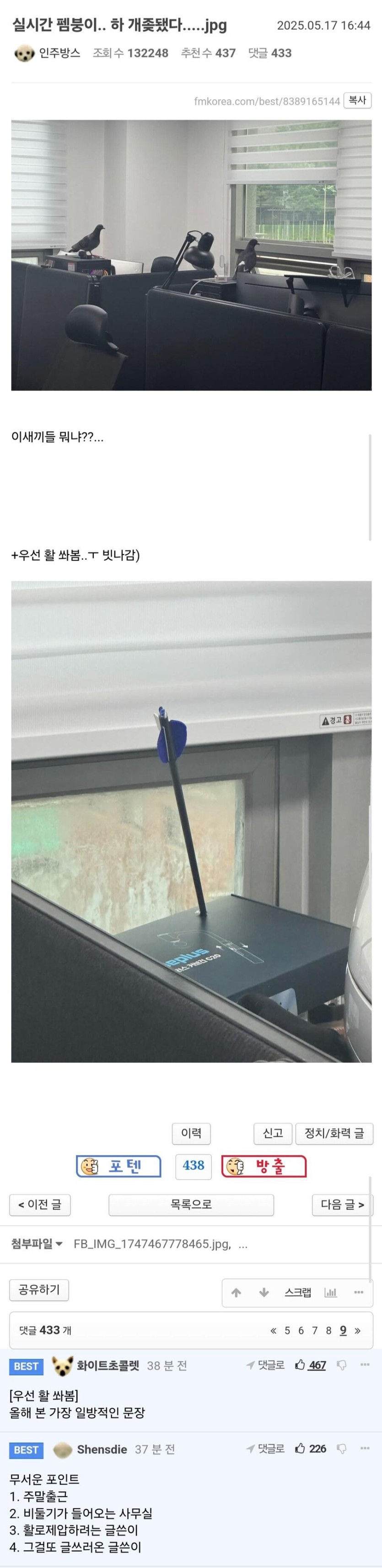 사무실에 비둘기가 들어와서 활을 쐈다.jpg