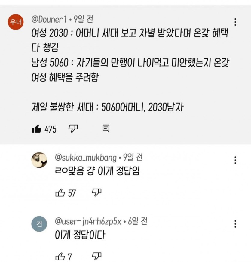 세대 갈등 댓글 일침