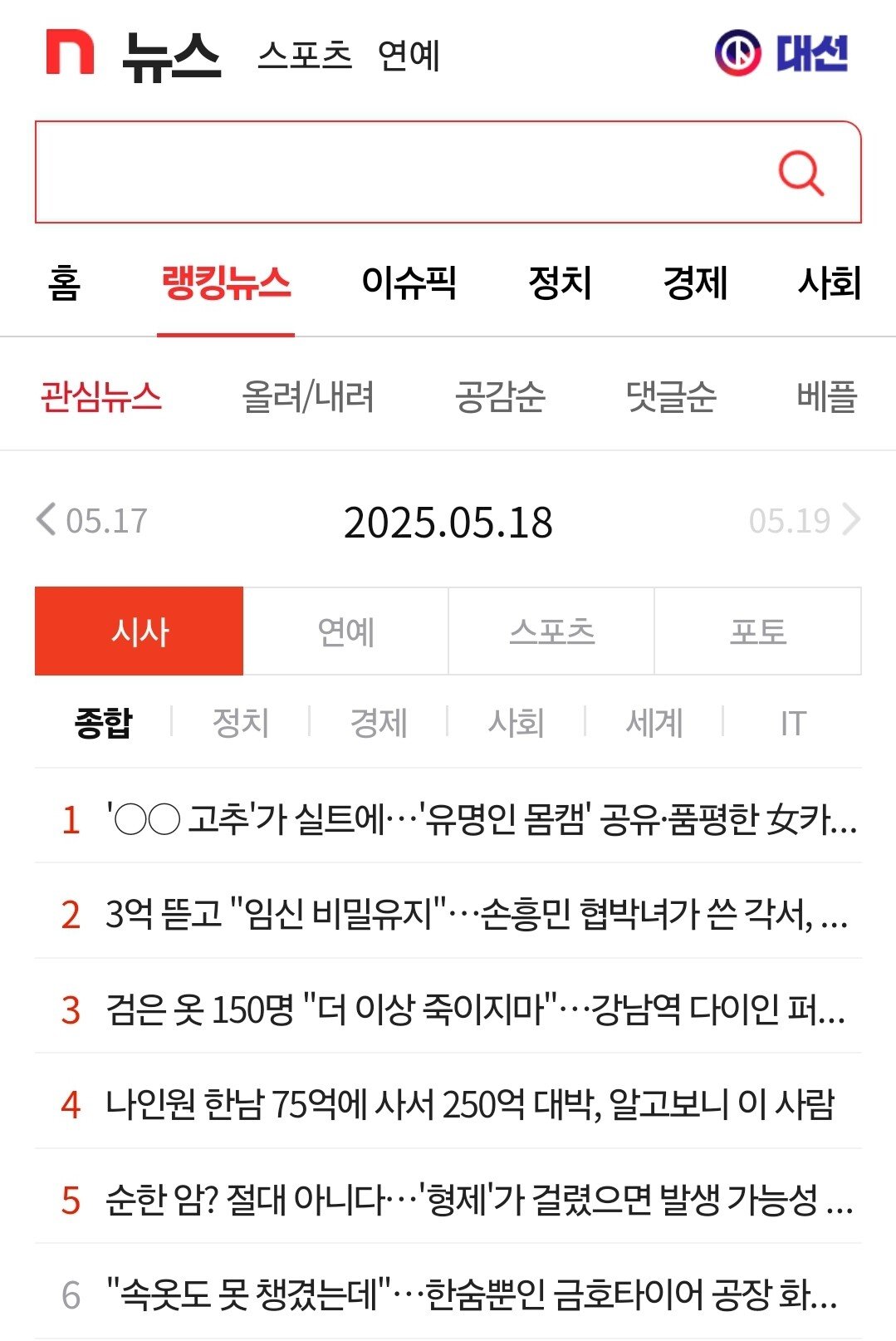 다른 곳도 아니고 네이트에서 심지어 현재 기준 시사 종합 1위 기사ㅋㅋ