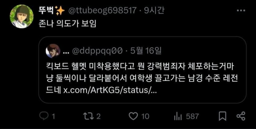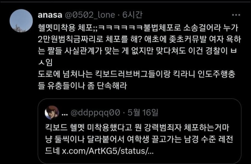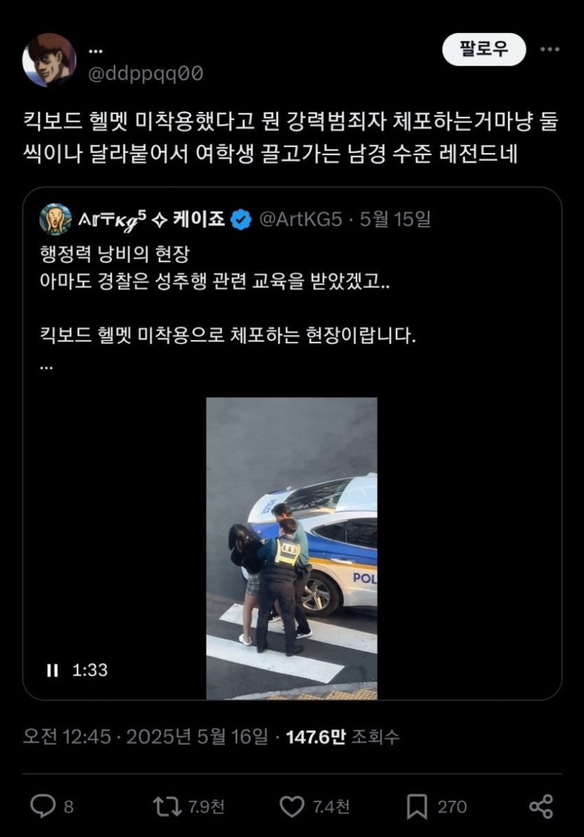 여고생 킥보드 체포 X반응