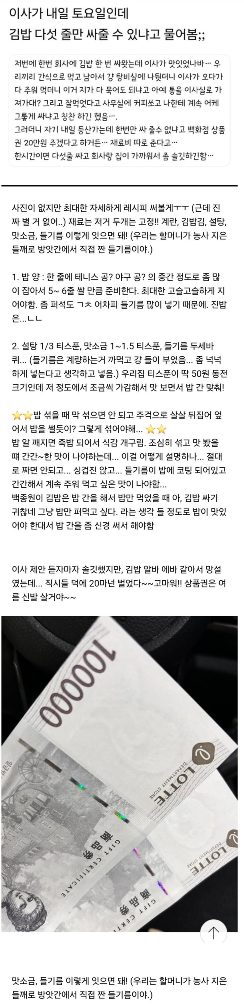내일 토요일인데 김밥 다섯 줄만 싸달라는 이사.jpg