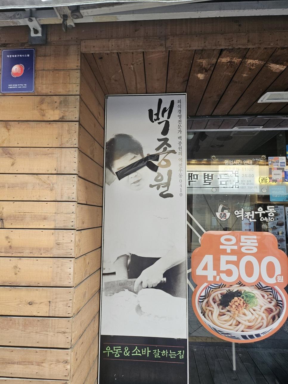 현시각 역전우동 앞 백종원 포스터