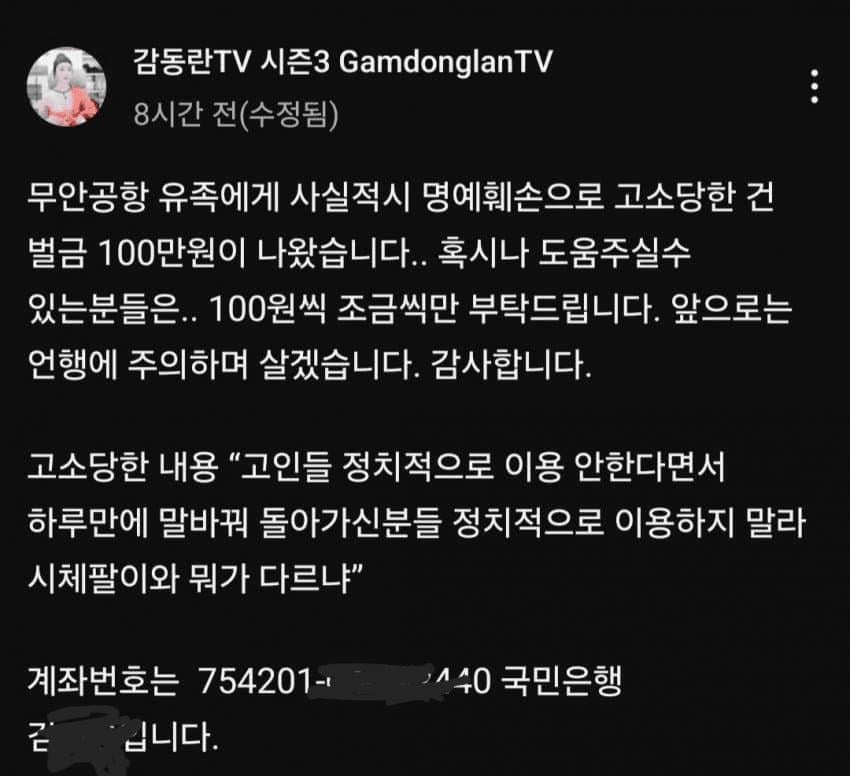 무안항공 유족들한테 고소당해 100만원 벌금 나온 유튜버.jpg