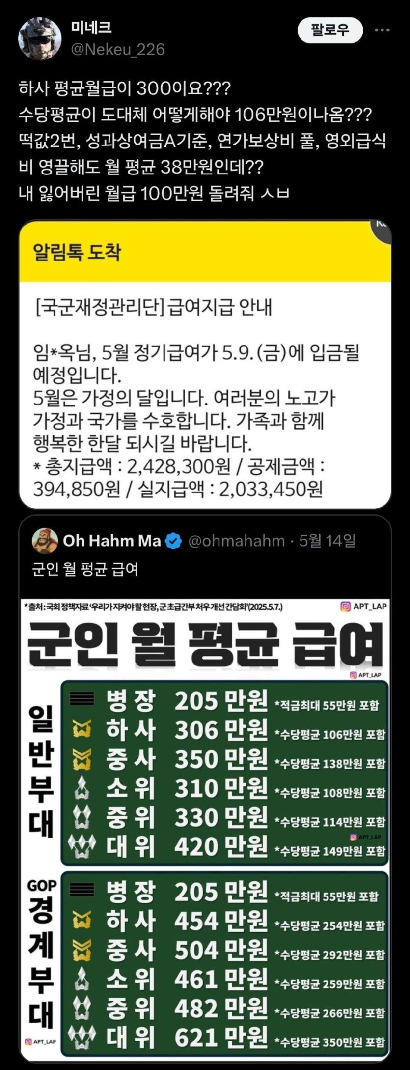 하사 평균월급 300만원 ㄷㄷ