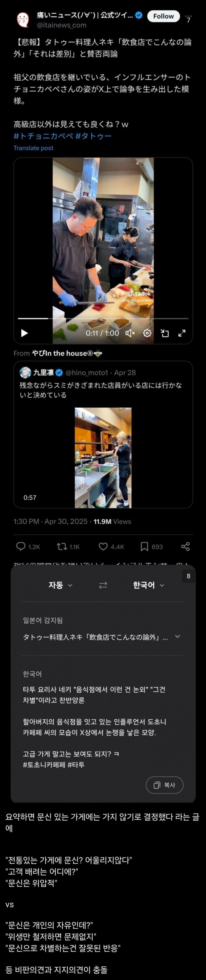 일본에서 논란이라는 어느 음식점의 4대째 계승자