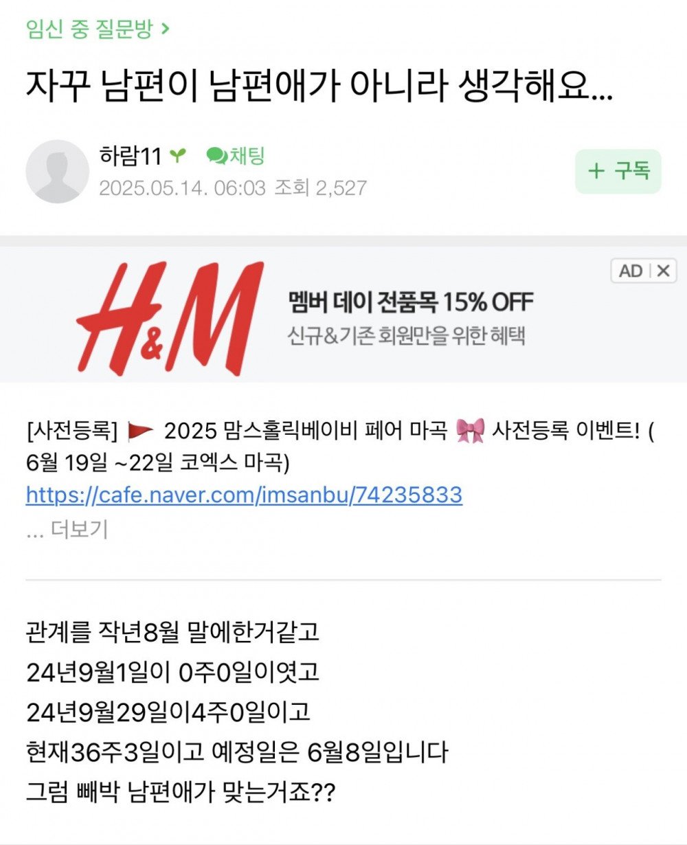 실시간 난리난 맘카페 친자유무 rh1 0 111 0 2025.05.17 12:15 요약하자면 전글에 전남친 몰래 만났다가 지인이 현남편한테 당신 아내가 전남친 몰래 만나고 다닌다 이야기해줌ㅋㅋ 그후 남편이 자기 애가 아닌거같다 빡쳐서 이혼하자하는데 여자는 유전사 검사 끝까지 안하고 버티는중 실시간 난리난 맘카페 친자유무 0