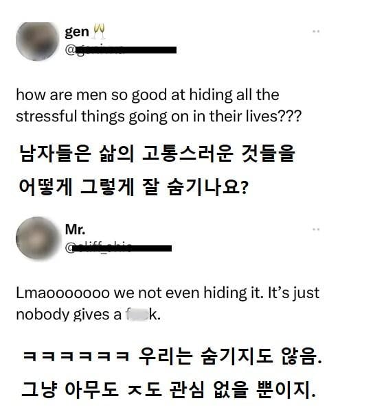 남자들은 삶의 고통스러운 일들을 어떻게 그렇게 잘 숨겨?