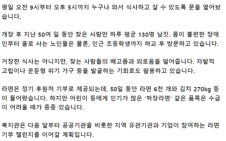 충주식 라면 축제...jpg rh1 0 96 0 2025.05.16 22:15 단순히 끼니 해결하는 곳이 아니라고립된 사람들이 문열고 밖으로 나와서 소통할 수 있는 만남의 광장이 되었음 0