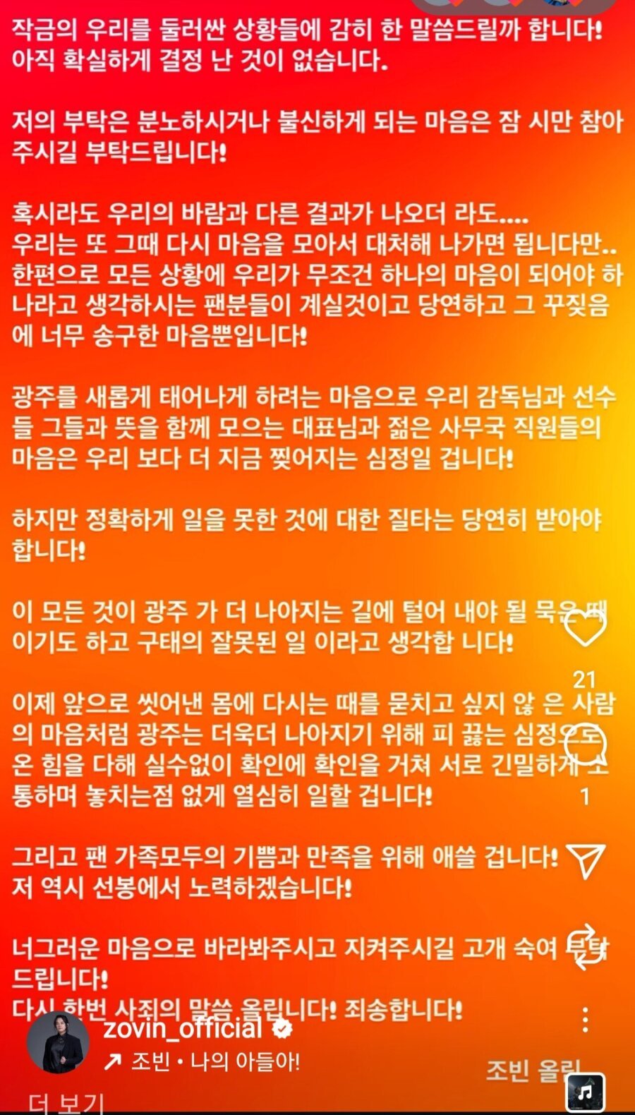 팬인 조빈형님이 미안하다 그러네