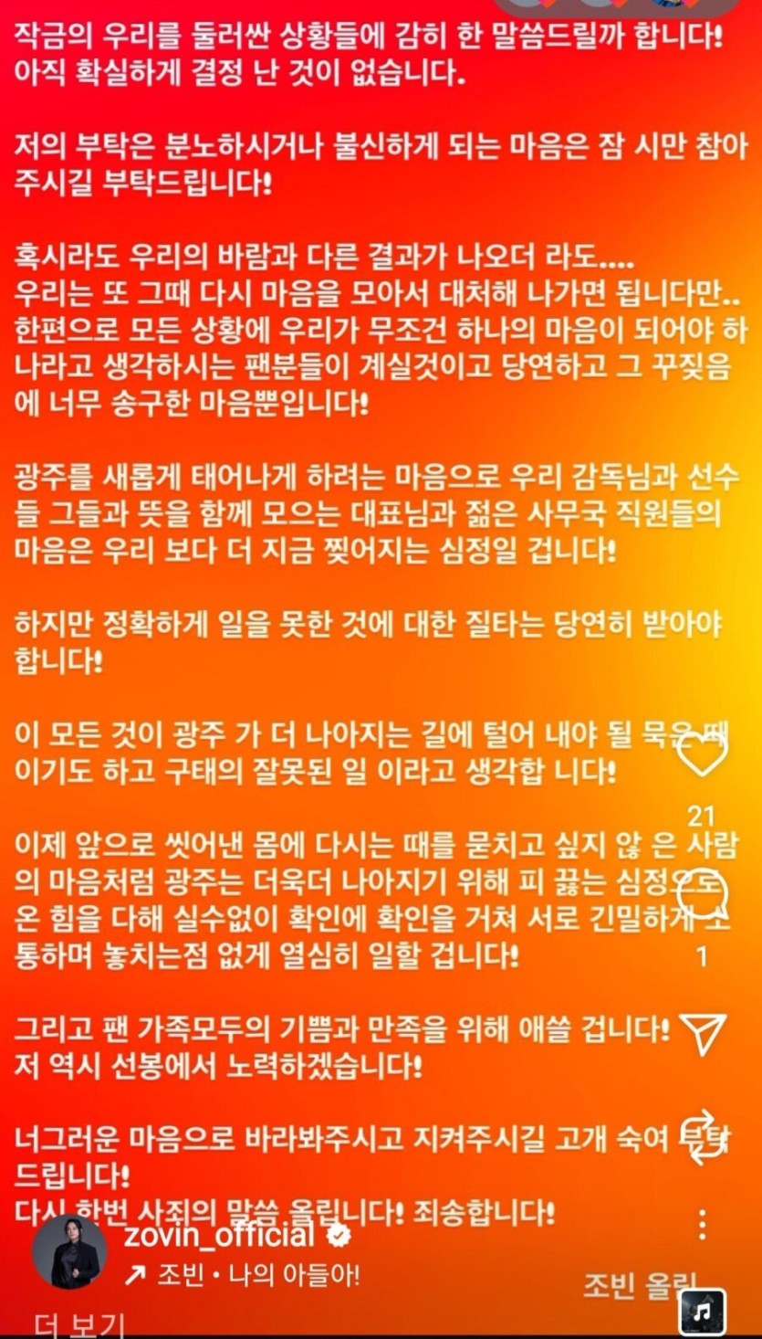 광주 프런트는 숨어서 별말도 안하는데