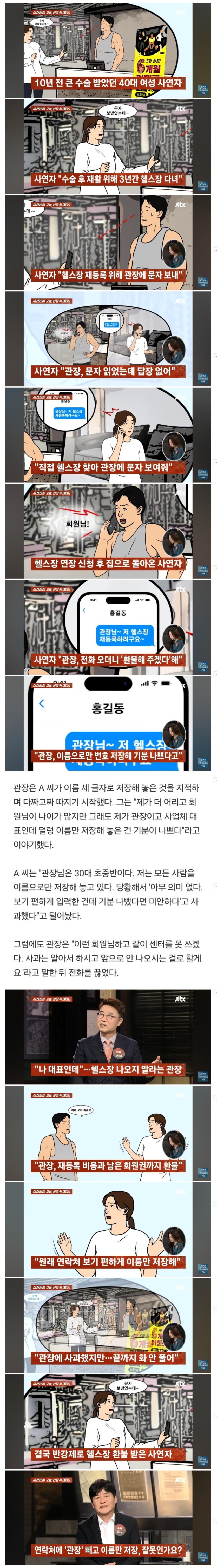이름으로만 번호 저장해 기분 나쁘다고 회원 강퇴시킨 헬스장