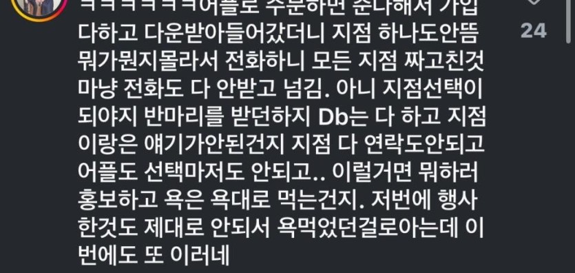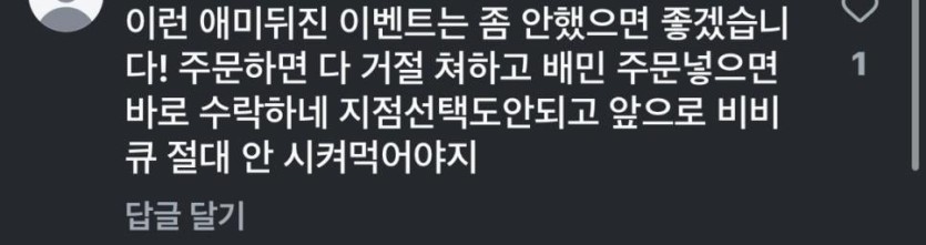 욕바가지로 먹고있는 bbq 반마리 무료 이벤트.jpg rh1 0 97 0 2025.05.16 18:15 주문하면 거절, 그 마저도 홈페이지 어플 터져서 주문조차 못하는 상황 ㅋㅋ 0