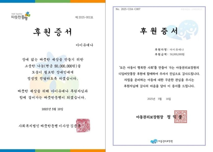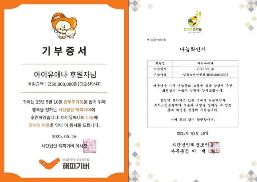 아이유, 5월 16일 생일 맞아 2억원 기부
