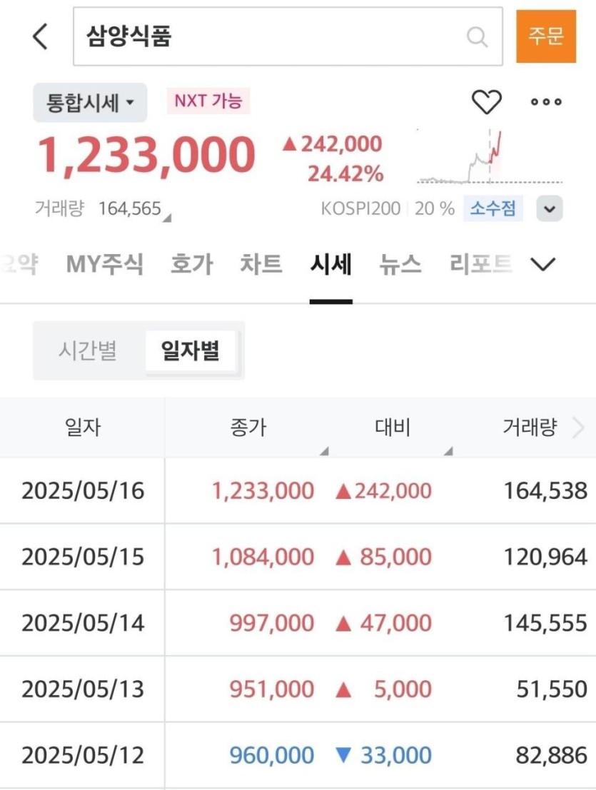 '불닭반도체' 삼양식품 주가 24% 폭등 ㄷㄷ rh1 0 137 0 2025.05.16 12:15 매출5290억 영업익 1340억 yoy 67.2% 순익 991억 yoy 49.1%수출데이터 전체 88.8m 달러면도체면비디아 0