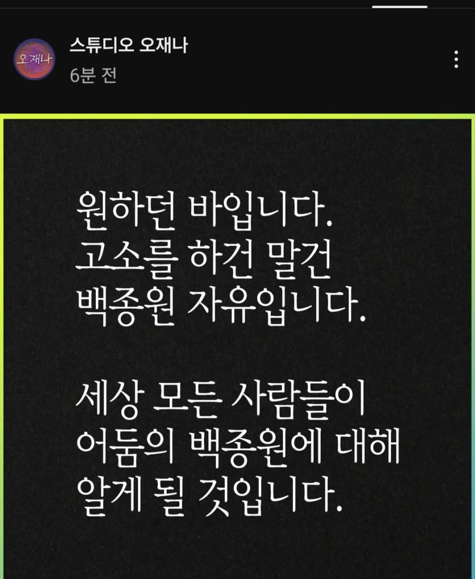 백종원 대표의 고소선언에 대한 스튜디오 오재나 김재환pd의 입장문.jpg