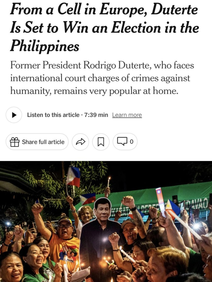 두테르테 전 필리핀 대통령, 감옥에서 시장 재선 성공.jpg