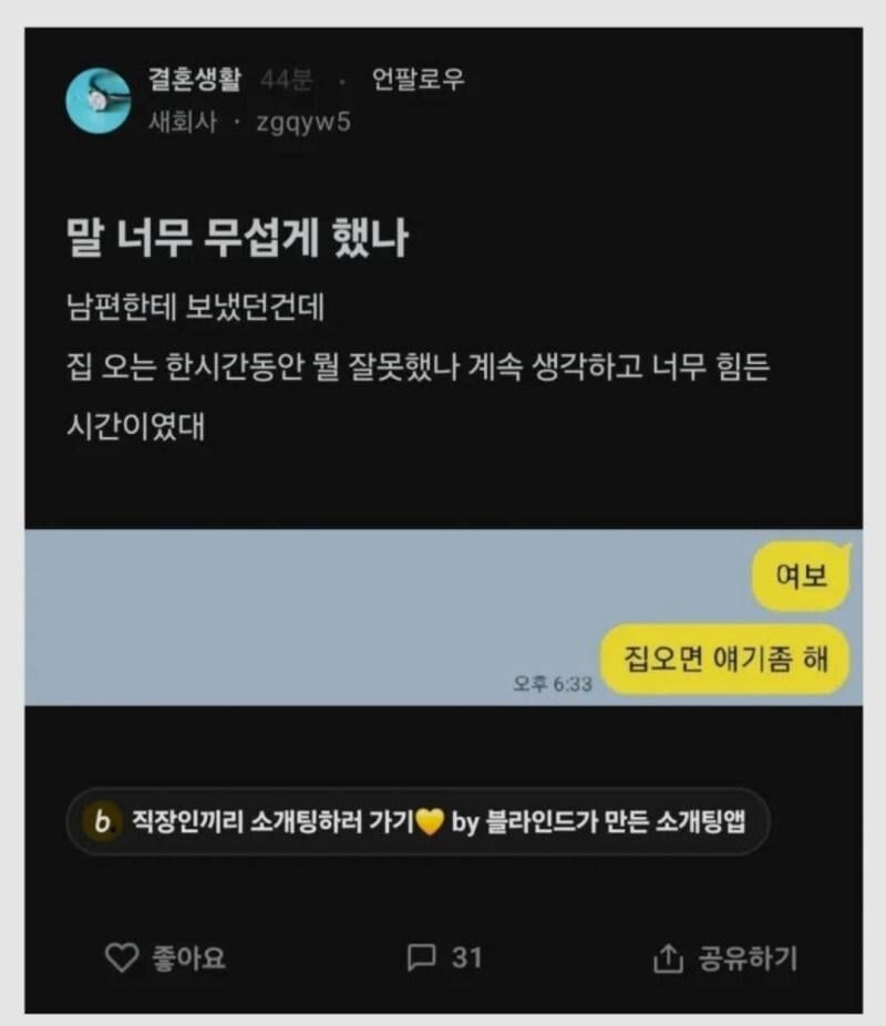 남편의 불안감을 극대화 시키는 한마디