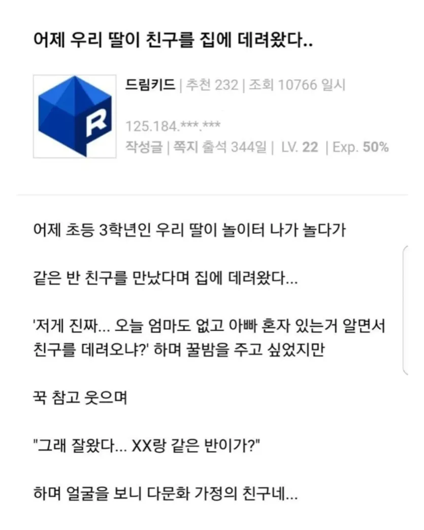 역수입) 초3 딸래미가 집에 친구를 데려왔다