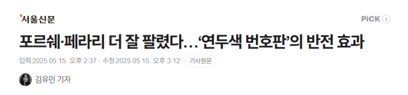 ‘연두색 번호판’ 이후 포르쉐, 페라리 근황 ㄷㄷㄷ rh1 0 111 0 2025.05.16 05:15 시행 초기 일시적으로 법인차 판매가 주춤했지만, 반년을 넘기며 상황은 정반대로 흘렀다. 업계 관계자는 “최근엔 연두색 번호판이 오히려 부유층을 상징하는 표식처럼 여겨진다”고 말했다. 0