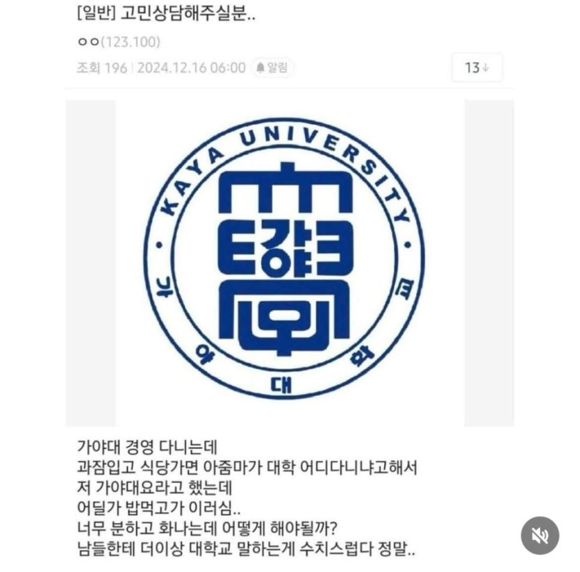 학교이름때문에 고민이 많은 대학생