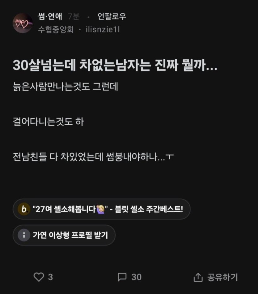 30살 넘는데 차 없는 남자는 진짜 뭘까.blind